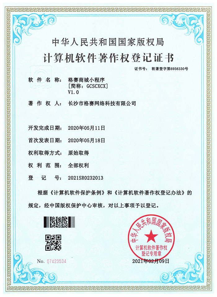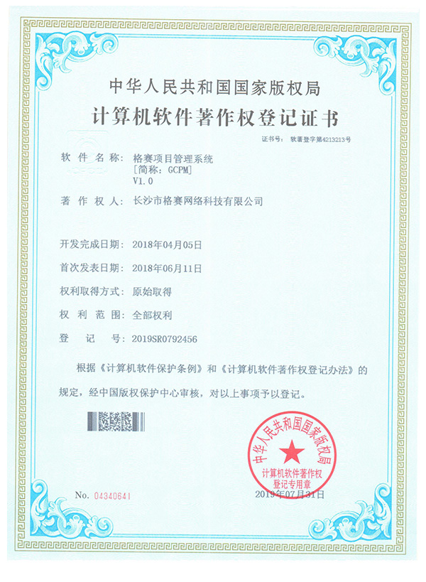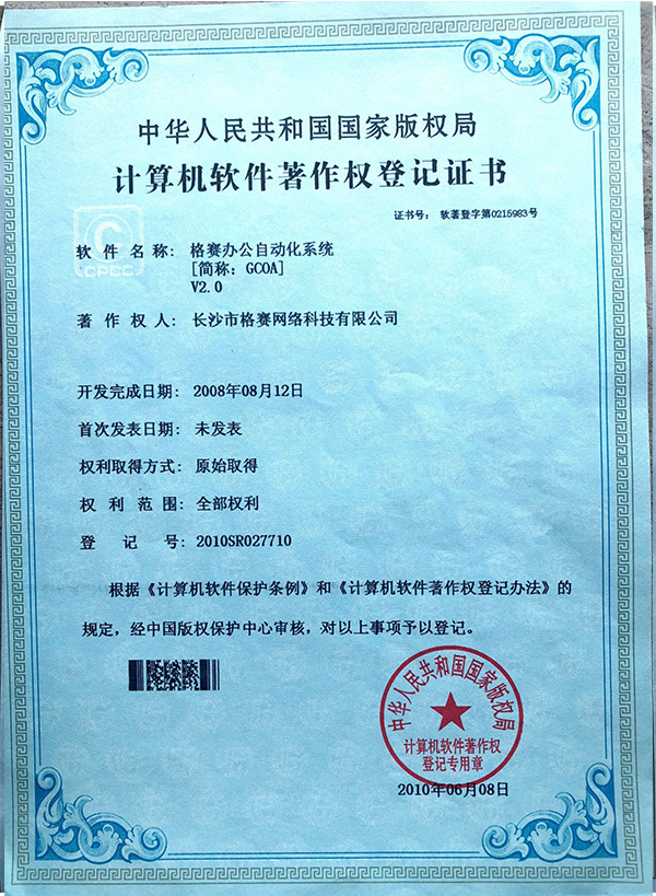 計算機軟件著作權(quán)登記證書